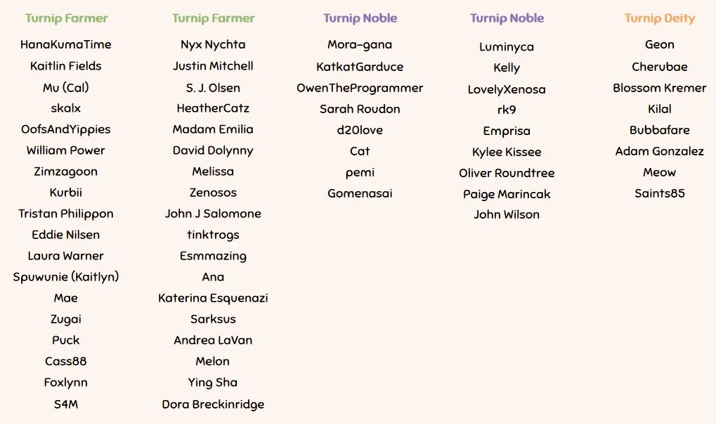 Extra thank you to our Patrons and Ko-fi supporters! Without you, Snacko development would look very different. We appreciate every one of you 🐾