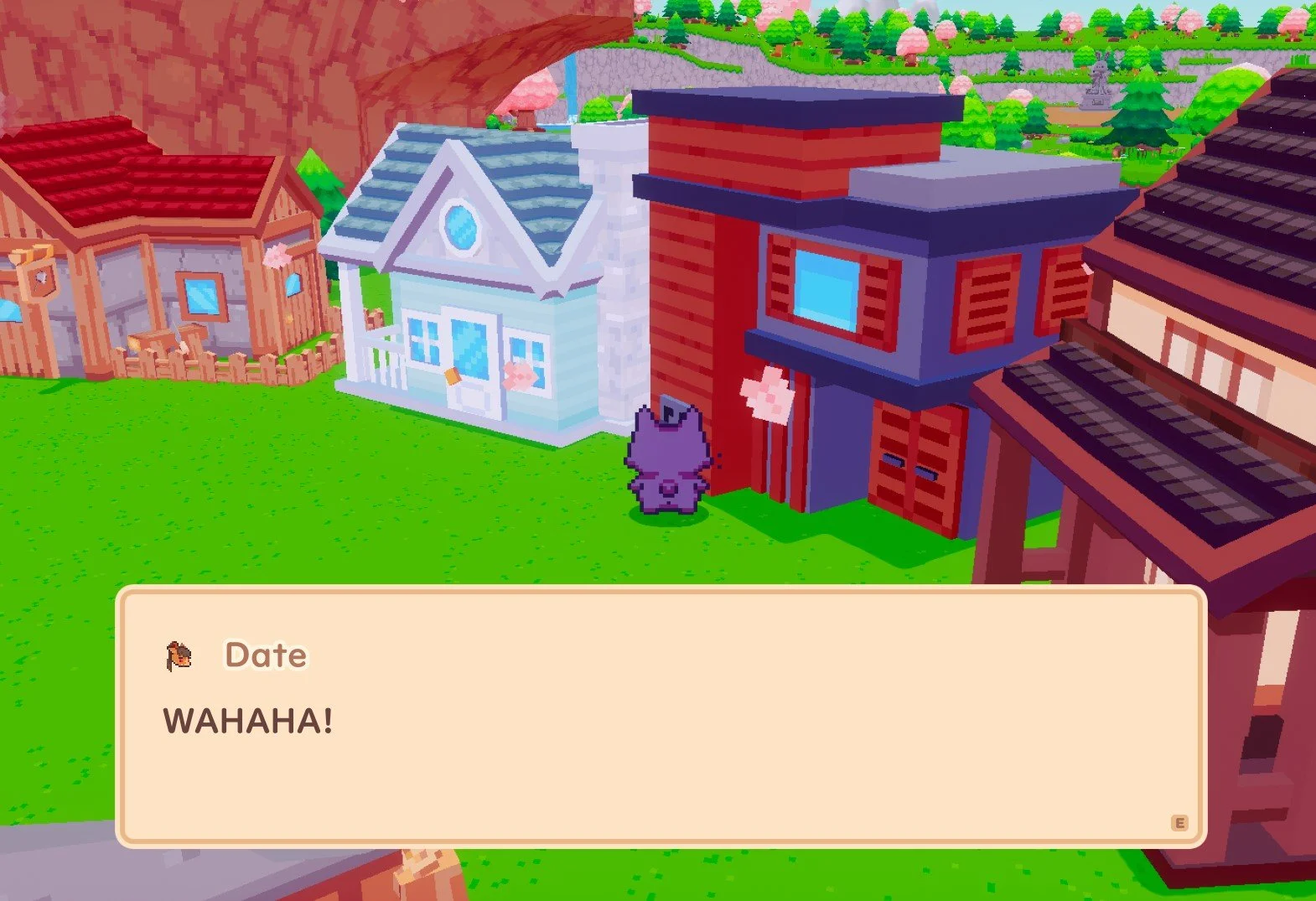 I wanted the houses to match the personality of their inhabitant, and this bold house with big windows and different style from the regular wooden cabins fits Date’s personality well.