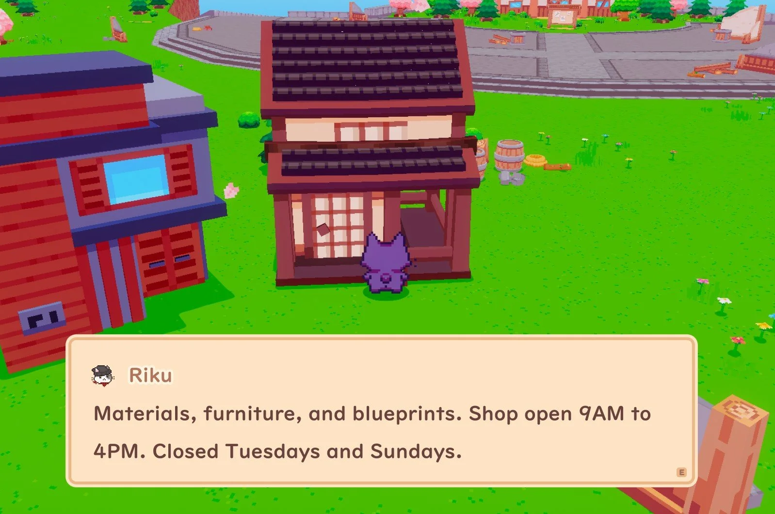 A little new touch I added to the houses to give them some character is interactable placards. View them to remind yourself of their opening hours, or just what the resident has scribbled on them.