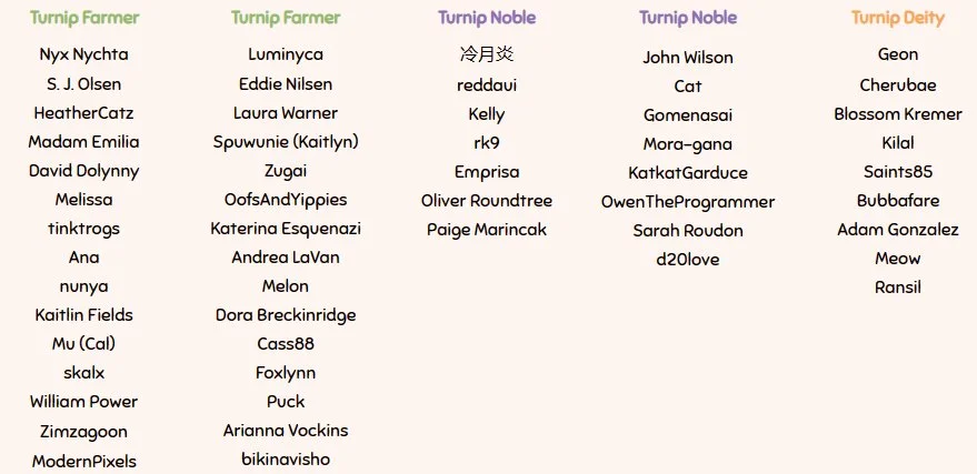 Extra thank you to our Patrons and Ko-fi supporters! Without you, Snacko development would look very different. We appreciate every one of you 🐾