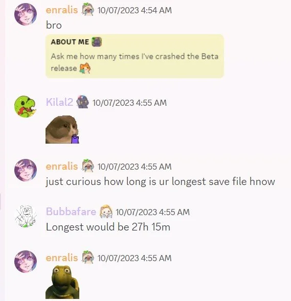 Bubbafare, one of our long-time supporters, was a huge help as they played...a hundred hours during beta.